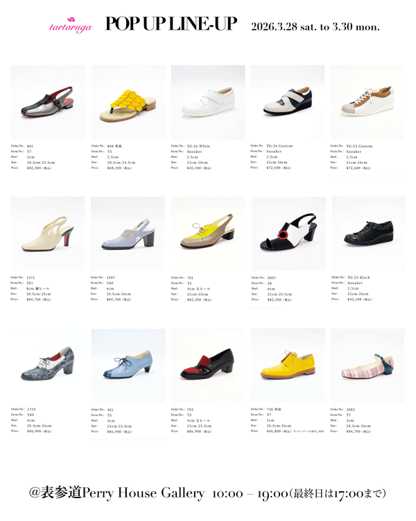 ラインナップは画像の通り、26SSの新作3点とtartaruga new basic sneakerに加えて、